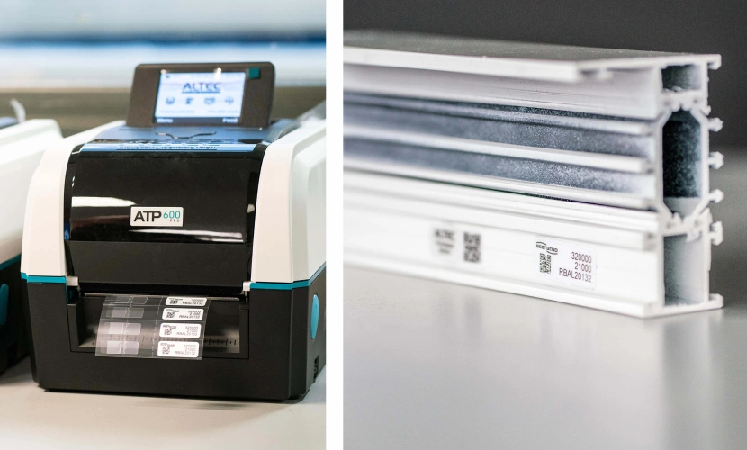 Heeft het profiel binnen bijvoorbeeld een raamconstructie een bepaalde positie nodig? Dan brengen we bijkomstig in de buitenkader én in de glaslat een extra label met gelijke nummering aan. Op die manier is het voor monteurs snel duidelijk welke glaslat waar in de raamconstructie geplaatst dient te worden. Zo vermijden we onnodig uitzoekwerk.